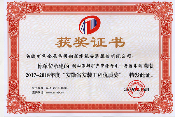 • 銅山磨浮—安裝優(yōu)質(zhì)工程獎