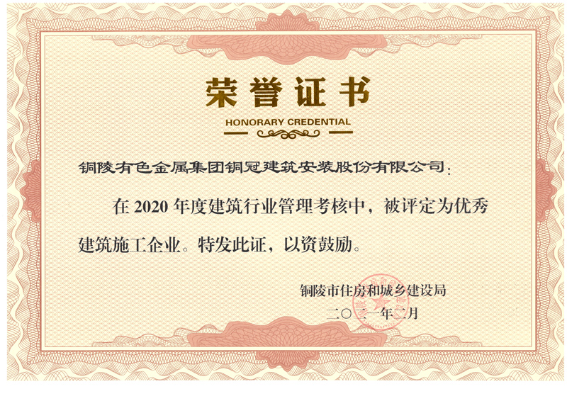 • 銅陵市2020年度優(yōu)秀建筑施工企業(yè)
