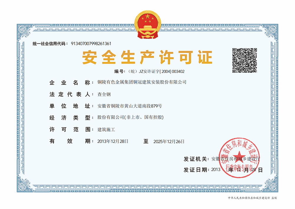 有色金屬工業(yè)建設(shè)工程質(zhì)量檢測(cè)機(jī)構(gòu)資質(zhì)證書